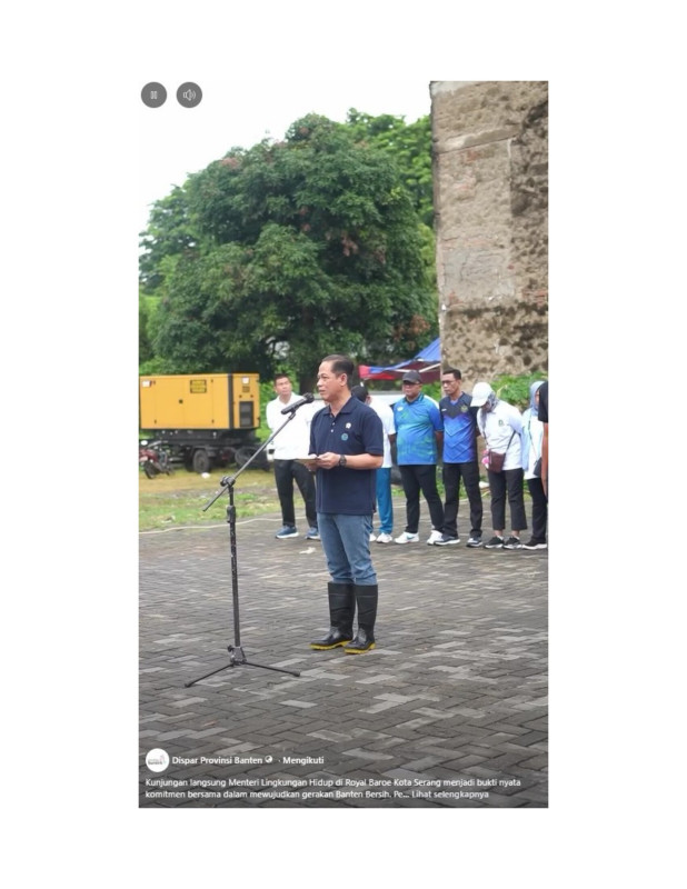 Sumber Gambar : Dinas Pariwisata Provinsi Banten (Facebook)Kunjungan langsung Menteri Lingkungan Hidup di Royal Baroe Kota Serang menjadi bukti nyata komitmen bersama dalam mewujudkan gerakan Banten Bersih. Peninjauan ini tidak hanya melihat kondisi lapangan, tetapi juga memastikan upaya pengelolaan sampah, kebersihan lingkungan, serta kesadaran masyarakat berjalan optimal.